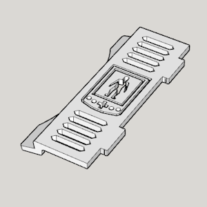 Extra Support for Exhaust Fan w/ Logo This support extends from the lower slots of the duct assembly to provide additional support for the Exhaust Fan (for normal 25mm-thick fans). It lines up with the small shelf extending out of the Top Panel. The vent slots and Pocket Adventures.com logo are purely decorative. If the shelf on the Top Panel ever breaks off, this can replace its functionality. |