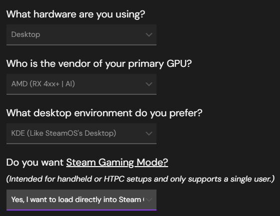 BC-250 - Board Preparation Hardware Preparation 1. Remove the metal bracket and backplate located at either end of the board (5 screws in total) ![]() Note the tiny M2-3mm screw above the DisplayPort connector. 2. Set the two jumpers next to the CMOS battery Set the right jumper (nearest the battery) to the right side for 5-10 seconds. This will clear the CMOS. Then move it back to the left as shown. ![]() 3. Install the M.2 SSD into the 2280 M.2 slot (both NVMe and SATA drives supported) ![]() Remove screw, insert drive at an angle, then screw down. Software Preparation 1. Download the Custom BC-250 BIOS files to a FAT32-formatted USB flash drive 2. Download and install the Balena Etcher software - Alternatively, you can use Rufus if you prefer it 3. Download the Bazzite ISO file ![]() These are the recommended download selections. 4. Using Balena Etcher (or Rufus), write the Bazzite image to a 16GB or larger USB flash drive - If you want to use the same flash drive from step 1, hold off on this step for now |